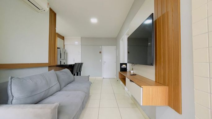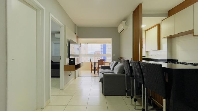O apartamento possui ambientes integrados e bem distribuídos, oferecendo um espaço moderno, funcional e muito aconchegante.