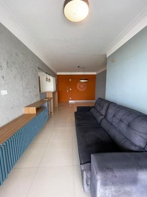 São 90² de área útil distribuídos em 2 Dormitórios sendo 1 suíte, sala com sacada, 1 banheiro, cozinha e área de serviço.