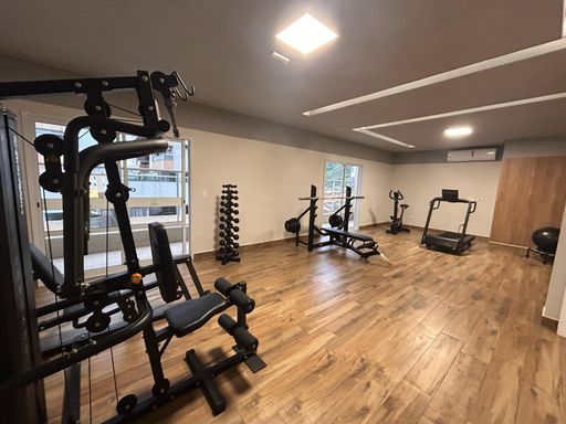 Edifício com ótima infraestrutura tendo 2 elevadores, portão eletrônico, portaria 24 horas, câmeras de monitoramento e área de lazer com: