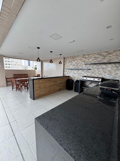 Edifício com ótima infraestrutura tendo elevador, portão eletrônico, câmeras de monitoramento, portaria 24 horas, gás encanado e área de lazer com: