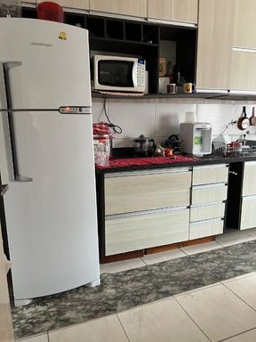 Distribuídos em 2 dormitorios, 1 sala, 1 cozinha, 1 banheiro suite e outro social , área de serviço e varanda.