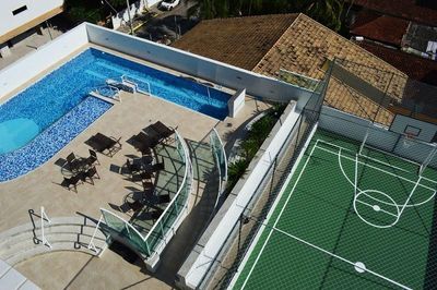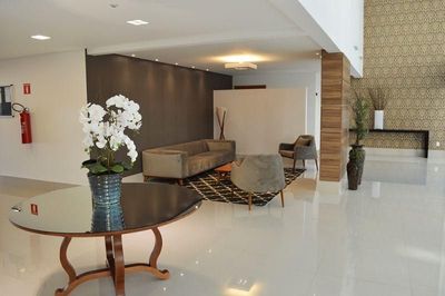 Edifício com ótima infraestrutura tendo 2 elevadores, portão eletrônico, câmeras de monitoramento, portaria 24 horas, gás encanado e área de lazer com: