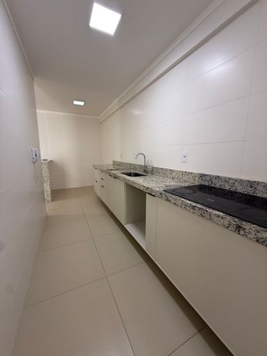 - cozinha com gabinete e fogão de indução