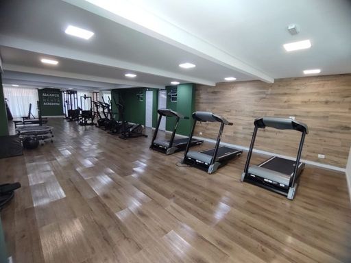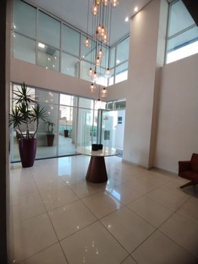 Edifício com ótima infraestrutura tendo elevador, portão eletrônico, portaria 24 horas em área de lazer com: