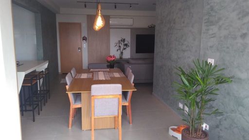 São 118 m² de área útil distribuídos em 3 suítes, 1 sala, 1 cozinha, 1 lavabo, área de serviço e varanda gourmet.
