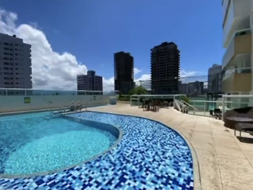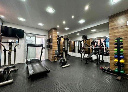 Edifício com ótima infraestrutura tendo 2 elevadores, portão eletrônico, câmeras de monitoramento, portaria 24 horas, gás encanado e área de lazer com: