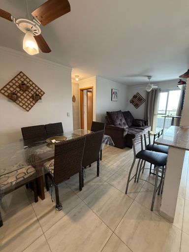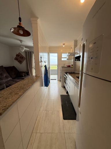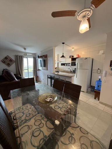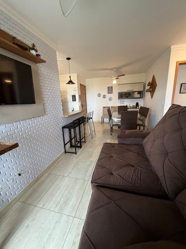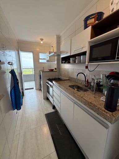 O apartamento conta com uma sala ampla e bem iluminada, dormitórios aconchegantes e uma cozinha funcional, ideal para quem deseja um espaço prático e confortável. A varanda complementa o ambiente, proporcionando um local agradável para relaxar e aproveitar a brisa do mar.