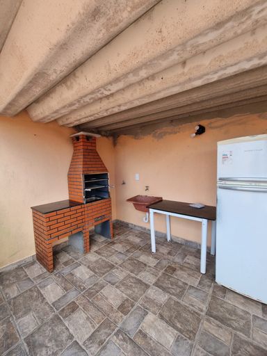 A casa possui terraço com churrasqueira à carvão .
